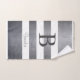 Modernes, abstrakt gestreiftes Badetuch-Set. Elegante graue, weiße Farben. Künstlerisches Design. Modernes, schlichtes und elegantes Badaccessoire. Sie können dieses Design für sich selbst oder für einen geliebten Menschen personalisieren, indem Sie Ihren Namen ändern. Eine Textvorlage wird zur Personalisierung mit Ihrem Monogramm oder Text hinzugefügt. Sie können auch die Probe Monogramm löschen, wenn Sie die Handtücher ohne Text bestellen möchten.