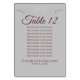 Machen Sie Ihren Hochzeitsempfang mit diesen Tischnummern schön. Sie zeichnen sich durch ein schlichtes und dennoch elegantes Design aus. Bordeaux oder Maronstext auf grauem Hintergrund mit silberner Imitat-Folie mit Blumenrahmen. Diese Karten beinhalten Sitzbelegungen, damit Ihre Gäste den richtigen Tisch leicht finden können.