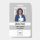 Erweitern Sie Ihr Mitarbeitererkennungssystem mit unserem Abzeichen für kundenspezifische Mitarbeiter und sorgen Sie dafür, dass Ihre Teammitglieder leicht zu erkennen sind, während Sie Ihr Unternehmen mit Stolz und Professionalität vertreten. Dieses Abzeichen zeichnet sich durch ein schlichtes Design mit einem schicken, grauen Hintergrund aus und zeigt eine nahtlose Mischung aus Eleganz und Modernität. Die Vorderseite des Abzeichens ist mit einem klaren und hochauflösenden Foto (vertikal oder portrait) des Mitarbeiters geschmückt, das eine schnelle und einfache Identifizierung ermöglicht. Unter dem Foto steht Ihr Firmenlogo im Mittelpunkt der Bühne, stärkt Ihre Markenidentität und fördert ein Gefühl der Einheit unter den Mitarbeitern. Um das Abzeichen noch weiter anzupassen, können drei Zeilen mit benutzerdefiniertem Text hinzugefügt werden. Dadurch können wichtige Informationen wie der Name des Mitarbeiters, die Bezeichnung des Jobs und die Abteilung sichtbar angezeigt werden.
