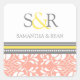 Maßgeschneiderte monogramm Umschlag Aufkleber für Hochzeiten, in elegantem pfirsichfarbenem, hellgelbem, grauem und weißem klassischem Blumendampf Vintages Muster, die perfekte Ergänzung zu Ihren Save the Date- oder Hochzeitsaufklebern, erhältlich in vielen passenden Hochzeitsartikeln. Kontaktieren Sie uns für eine Farbänderungsanfrage.
