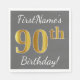 Grau, Imitate Gold 90. Geburtstag + Individuelle N Serviette