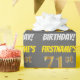 Dieses Packpapier-Design enthält eine Nachricht wie "FIRSTNAME’S 71. BIRTHDAY!", mit dem "71.", der ein goldenes Imitat/Imitation hat, und mit dem Namen und "BIRTHDAY" in einem lustigen, kühlen Schriftart. Der Name kann personalisiert sein, der Hintergrund ist grau (grau). Papier wie dieses könnte vielleicht benutzt werden, um Geburtstagsgeschenke zu verpacken, die jemandem zur Feier seines siebzigsten ersten Geburtstages gegeben werden. [~Z0000211]