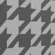 Ein klassisches Hahnentrittmuster-Design in einfarbigen Grautönen schafft ein unterhaltsames und aktualisiertes Muster mit einem endgültigen Akzent eines metallisch-ähnlichen Silbers gemischt, um ein Design zu schaffen, das wirklich Pop wird.