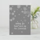 Mit dieser modernen Weihnachtskarte mit anmutigen fallenden Schneeflocken auf einem schicken grauen Hintergrund, auf dem die Staaten "Schnee viel Freude zu Weihnachten wünschen", steigern Sie Ihre Urlaubssaison. Personalisieren Sie es mit Ihrem Namen auf der Rückseite für diese individuelle Touch!