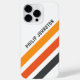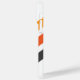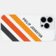 iPhone Gehäuse mit drei diagonalen Streifen in dunkelgrau und zwei Orangetönen auf weißem Hintergrund und Ihrem individuelle Name in einem kühlen, modernen serifenlosen Schriftart.
