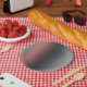 Grau, rosa, schwarzer Farbverlauf, Ombre. Pappteller