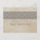 Einfache und elegante Rustic Lace Tischnummer Postcard mit einem Vintagen Texturlook im Hintergrund und einem süßen und tönigen Spitzen-Rahmen in Grau. Einfach anzupassen, fügen Sie einfach die passende Tischnummer(en) in das Textfeld ein. Klicken Sie auf "Anpassen", um weitere Personalisierungsoptionen zu erhalten.