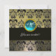 GRAU SCHWARZ-DAMASK-MONOGRAMM, BLAUER AQUAMARIN EINLADUNG