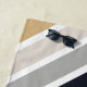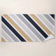 Strandhandtuch aus Grau, Schwarz und Tan. Ruhige, neutrale Farben, grau, schwarz und bräunlich gestreiftes Strandhandtuch mit horizontalem Streifen. Von celeste@khoncepts.com