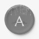 Grau Silver Glitzer Monogram Birthday Pappteller
