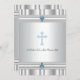 Elegantes blaues Kreuz auf einem silberweißen Hintergrund mit zwei hellblauen Baby-Boy-Taufen, Taufe und Widmung Einladung besticht. Diese wunderschöne, blau-graue Baby-Taufeinladung lässt sich leicht an Ihre Veranstaltung anpassen, indem Sie einfach den Button "Anpassen Sie es!" wählen, um Ihre Veranstaltungsdetails, den Stil des Schriftartes, die Größe und Farbe des Schriftartes und den Wortlaut hinzuzufügen. Bitte beachten Sie: Alle Aufkleber, Karten und Einladungsdesigns, die Sie auf Zazzle finden, sind gedruckte Grafiken ohne wirkliche Juwelen, Bögen, Höhen, Prägen oder Beilagen.