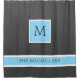 Holzkohle grau und hellblau mit weißem, waagerechter Streifen, Monogramm-Duschvorhang.