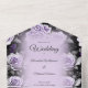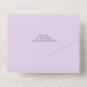 Die exquisite Lavendel Rose All in One Hochzeitseinladung, in der Eleganz und Eleganz aufeinander treffen. Diese Einladung soll Ihre Gäste vom Augenblick an begeistern, an dem sie das Set der Lavendel-Rose auf einem luxuriösen, dunkelgrauen Hintergrund sehen. Die All-in-One Hochzeitseinladungen sind schön und praktisch, indem sie die Hochzeitseinladung mit einer leicht zu entfernenden perforierten UAWG-Postkarte kombinieren. Sie sind auch schnell und einfach für den Versand vorbereitet. Einfach auf die Einladung richten, die Rückenklappe und das Siegel mit den beiliegenden Klarsichtstickern falten. Sobald Ihre Gäste die voradressierte Einladung erhalten, reißen sie einfach die perforierte RSVP-Karte ab und lassen sie in der E-Mail ablegen.