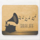 Die Vintage Gramophone-Mousepad in dunkelgrau mit einer Silhouette eines altmodischen Grammophons und einer Kaskade musikalischer Noten auf einem digitalen, kunstvoll gerenderten Papierhintergrund. Dieses schicke Mousepad fügt Ihrem Arbeitsbereich einen Vintagen Flair hinzu und ist perfekt für jeden Musikfreund geeignet. Einfach anzupassen, einfach mit dem Text Ihrer Wahl personalisieren. Klicken Sie auf den Button "Anpassen", um weitere Personalisierungsoptionen zu finden.