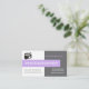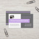 Fotograf graue, weiße, lavender-eye Visitenkarte mit einer Fotokamera in schwarz auf weißem, grauem Hintergrund und einem lavender lila Band mit dem Text Fotograf. Eine großartige berufliche Visitenkarte für Fotografen oder Fotografen.