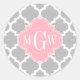 Grau weiß marokkanisch #5 Pink 3 Initial Monogram Runder Aufkleber