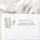 Auf der links Seite dieses eleganten, modernen Retourenlabels befindet sich eine graue und weiße Aquarellgrenze mit vergoldetem Imitat-Glitzer, die mit einem vergoldeten Imitat-Folienkreuz bespannt ist. Passen Sie den Text mit dem Namen Ihrer Familie in handgeschriebenen handgeschriebenen handgeschriebenen Holzkohle-Schriftzeichen an und Ihre Adresse im Schriftart mit Kupferplatte auf weißem Hintergrund.