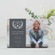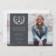 Eine formelle, aber moderne Abschluss Foto Ankündigung, um diejenigen zu feiern, die einen Juris Doktor Abschluss. Mit einem Foto mit Vollblut, Farbüberlagerung und Rechtsskala (mit der Abkürzung "JD"), umgeben von einem Lorbeerkranz in Weiß. Der Vorlagentext für die Details des Absolventen ist vollständig anpassbar, sodass Größe, Stil, Farbe und Platzierung des Schriftartes geändert werden können. Die Rückseite bietet einen soliden Hintergrund und Vorlagentext für eine längere Meldung. Wenn Sie es vorziehen, keinen Text auf der Rückseite einzufügen, löschen Sie ihn einfach vor der Bestellung. Wenn Sie ein Foto auf der Kartenrückseite bevorzugen, löschen Sie sowohl den farbigen Hintergrund als auch den Vorlagentext und laden Sie Ihr eigenes Foto hoch. Das Design ist in anderen Farben in meinem Laden erhältlich.