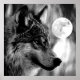 Gray Wolf Portrait & Vollmond - Blauer Tongesicht von Grauen Wolf - Uni Pop Kunst - Wildtiere - Welt der Extremtiere - Wölfe Computerbilder - Digital Comic Style Tierkunst