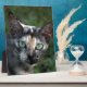 Graubraun-weiße Katze mit grünen Augen Fotoplatte