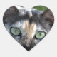 Graubraun-weiße Katze mit grünen Augen Herz-Aufkleber