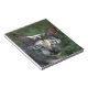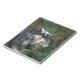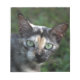 Graubraun-weiße Katze mit grünen Augen Notizblock