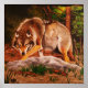 Dies ist ein gemischtes Medienstück, das zuerst mit Holz verbrannt wurde, dann der Wolf mit Farbstift eingefärbt und der Hintergrund eingefärbt.
