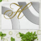 Modernes, minimalistisches und elegantes Design für ein Küchentuch, das individuell angepasst werden kann, personalisiert mit einem Monogramm, einem Anfangsbuchstaben, wenn Sie wollen... Einfach schick in neutralen Farben, graue Farbnuancen auf weißem Hintergrund.Mit Monogramm mit verzierter Goldkalligraphie, wie Handschrift.Eine wunderschöne Wohngestaltung in der Küche oder im Essbereich oder eine tolle Geschenkidee für verschiedene Anlässe.