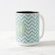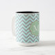 Graue Aqua Zickzack Stripes Monogramm Zweifarbige Tasse