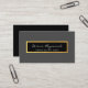 Die Einfachheit einer eleganten und schicken dunkelgrauen Kontaktkarte mit Imitate goldenen Details, und mit Feldern für Namen (oder Firmennamen), Beruf und zusätzliche Informationen (Adresse, Telefonnummer und E-Mail)...
