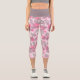 Graue Blätter Rosa Blasen Capri Leggings