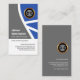 Oben rechts befindet sich ein optionales goldenes Globus-Logo, das Sie verwenden können. Unmittelbar darunter, in der Grauschicht, finden Sie Ihren prestigeträchtigen Namen und Jobtitel mit dem Slogan "Call me for a free quoation". An der Basis sind der Firmenname und die Kontaktdaten.