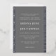 Formaler Text in eleganter und moderner Typografie lässt sich leicht auf dieser coolen, sträubend grauen Hochzeitseinladung mit einer gehobenen geometrischen Randgrafie aus Folie, inspiriert durch das Schlittentextil aus Lehmstoff, aufzeichnen und verleihen dieser schicken Hochzeitseinladung eine gehobene böhmische Atmosphäre.
