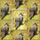 Dieser Stoff zeigt ein sich wiederholendes Muster eines grauen Katvogels, der auf einem Zweig sitzt und sein Lied in die Welt singt, während er die Klänge anderer Vogelarten kopiert und sie zusammenfügt, um sein eigenes Lied zu machen. Er miaut auch wie eine Katze!