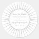 Eleganter und eleganter Deko Retro Save the Date Stickers in Grau mit einem kreisförmigen Deko-dekorativen Sonnenburstdesign. Einfach zu anpassen, fügen Sie einfach Ihre Hochzeitsdetails in den Textfeldern zur Verfügung gestellt. Klicken Sie auf "Anpassen", um weitere Personalisierungsoptionen zu erhalten.