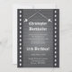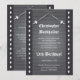 Eine dunkelgraue Fechtfeier, die zwei epees an der Spitze der Einladung und Diamantendesigns an der Seite hat. Die Einladung sieht mittelalterlich aus, mit einem Schriftart, der für eine Ritterfeier ideal ist.