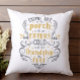 Kopfkissen mit eleganten grauen und gelben Schriftrollen mit den Worten "Komm, setz dich auf die Veranda mit mir, die Getränke sind kalt und die Freundschaft ist frei.' auf der Vorderseite. Koordination des Blumendrucks auf der Rückseite. Sehen Sie sich alle unsere Dekoration in unserem Zazzle-Shop an!