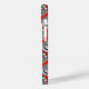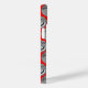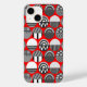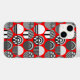 Dieses Handy Gehäuse hat eine geometrische Konstruktion von Ovalen mit verschiedenen Mustern in Grau in jeder Hälfte, alle auf einem Feld von rot.