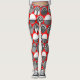 Diese Leggings haben ein geometrisches Design von Ovalen mit unterschiedlichen grauen Farbmustern in jeder Hälfte, alles auf einem Feld rot.