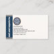 Hinter dem Blatt steht der Firmenname an der Wand in einer blauen Streifen-Spalte. Darüber hinaus ist das Gold-Logo gefolgt von Ihrem prestigeträchtigen Namen, Kontaktinformationen und eine weitere Slogan-Option, um Ihre Dienstleistungen zu werben.