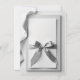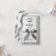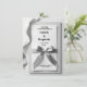 Eine luxuriöse Hochzeitseinladung mit einem raffinierten, grauen Design, das mit einem zarten Satinband in einem weichen, fließenden Bogen verbunden ist und der Ästhetik eine Touch von Eleganz und Weiblichkeit verleiht. Der subtile Gürtel des Band fängt das Licht an, und seine sanften Falten und Falten geben ihm eine taktile und realistische Qualität. Vor einem weißen oder hellgrauen Hintergrund, der einen sauberen Kontrast zur Textur des luxuriösen Farbbands bietet, erinnert das gesamte Stück an ein Gefühl von Eleganz und Raffinesse.