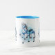 Ich liebe Karussell schon seit meiner Kindheit. Die schönen Entwürfe der Tiere und die Musik von Karussell Set auf Messen und Parks halten einen besonderen Platz in meinem Herzen. Das inspirierte mir, ein paar Karusselle-Pferde von mir zeichnen, dann mit Acrylfarbe zu färben. Die Aquarellfarbe eines grauen Pferdes, das blau auf dieser Tasse dargestellt ist, ist eines der Ergebnisse.