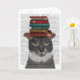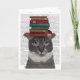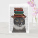Graue Katze mit Büchern auf Kopf Karte