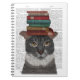 Graue Katze mit Büchern über Kopf von FabFunky. Eine niedliche graue Katze sieht wissenschaftlich aus, mit Büchern, die über ihrem Kopf stapelt sind. | 191385D