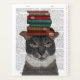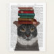 Graue Katze mit Büchern über Kopf von FabFunky. Eine niedliche graue Katze sieht wissenschaftlich aus, mit Büchern, die über ihrem Kopf stapelt sind. | 191385D