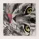 Graue Katze mit gelben Augen leckende Paste Puzzle