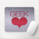 Einfache, aber coole Geek Liebe (Herz) Mousepad mit dem Wort Geek und einem Damast Herz. Lass deinen Bürofreunden deine Vorliebe für Geeks mit diesem lustigen Mousepad! Passen Sie dieses Design an, indem Sie das schlanke Metall-Hintergrundbild entfernen oder ersetzen.