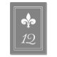 Elegante und einfache Hochzeitskarte mit einer Lilie auf grauem Hintergrund. Dieses Design ist eine einzigartige Wahl für eine moderne Hochzeit. Einfach mit den entsprechenden Tischnummern anpassen. Klicken Sie auf "Anpassen", um weitere Personalisierungsoptionen zu erhalten.