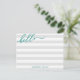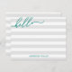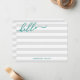 Personalisierte schicke Mitteilungskarten mit blass grauen und weißen Linien. Hallo ist in der oberen links Ecke in einem aquamarinen Skript geschrieben. Fügen Sie unten Ihren Namen hinzu.
