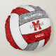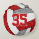 Dieses niedliche Volleyballthemenkissen zeigt das Bild eines realistischen Volleyballs mit roten, grauen und weißen Paneelen, auf denen man den Namen, den Monogramm- oder Varianzbuchstaben, den Mannschafts- und Maskottnamen auf der Vorderseite und die Jerseynummer auf der Rückseite anpassen kann - die rot-grauen Paneele des Volleyballs werden mit einem künstlerischen, kaleidoskopischen Muster für ein texturiertes Aussehen kombiniert - von katz_d_zynes